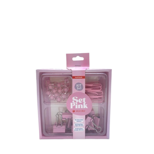 SET SKYCOLOR PINK 3X1 CHINCHES/CLIPS/BIND KBC3E1-3